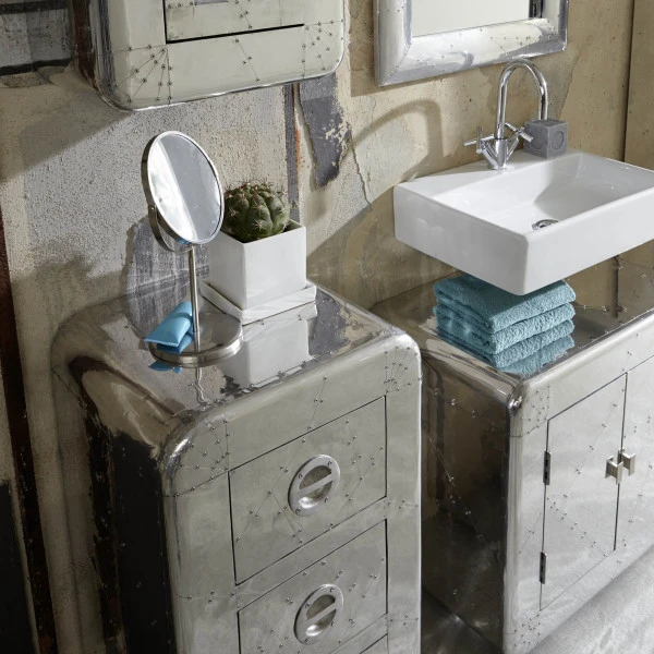 Dit aluminium ladekastje komt op veel plekken in huis van pas. Zet het bijvoorbeeld in de badkamer: handig voor crèmes, haarproducten en pleisters! Of gebruik het ladekastje in de hal voor hondenriemen en handschoenen. Maar je kunt het ladekastje ook een mooie plek in de woonkamer geven, waar het beslagen aluminium voor een retro sfeer zorgt. Met een breedte van 45 centimeter heb je er altijd wel plaats voor!