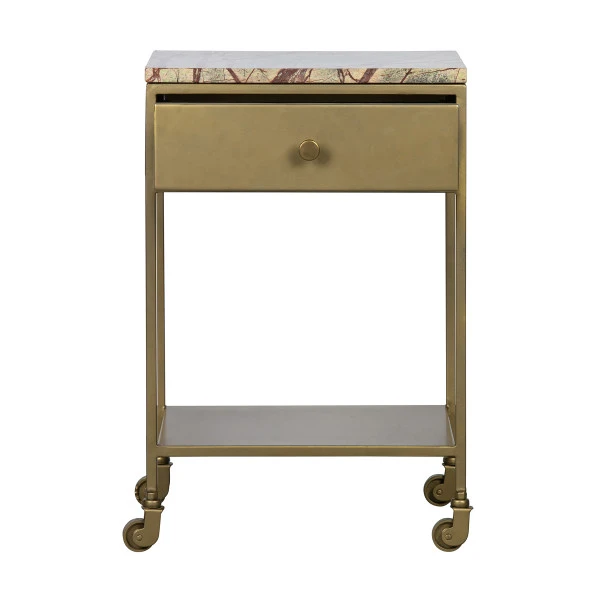 Nachtkastje op wielen goud marmer