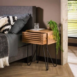 - Nachtkastje is gemaakt van MDF met eikenfineer