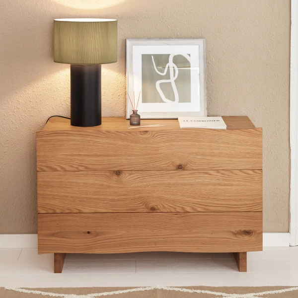 Het Kave Home Rasha ladekast is heerlijk compact, maar biedt toch heel wat extra opbergruimte. Met een breedte van 104 centimeter past de ladekast op veel plekken in huis! In de eiken lades zie je de karakteristieke lijnen van het hout nog mooi terug. Ook de boomstam vorm van de lades draagt bij aan de natuurlijke uitstraling van de ladekast.