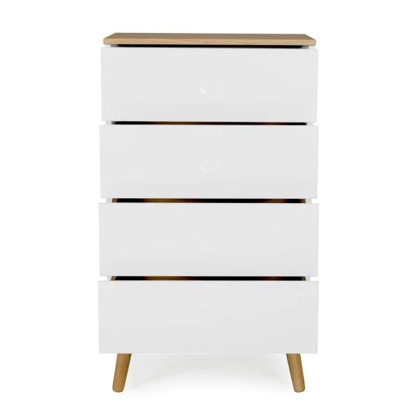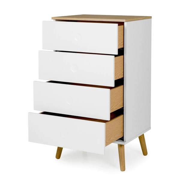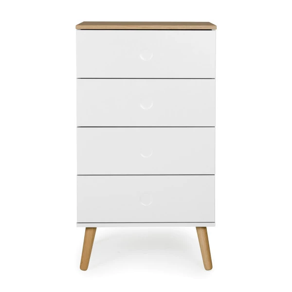 Je herkent de Tenzo Dot serie aan een Scandinavische design look met speelse poten en eikenhouten accenten. Behalve deze hoge ladekast vind je er ook een laag model én een bijpassend, eiken tv-meubel in wit, grijs of groen.