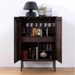 Deze hoge kast van gerecycled hout zit boordevol kleurvariaties en unieke details! Een echte sfeermaker, en bovendien bijzonder praktisch. In de lades is plaats voor losse rommeltjes, terwijl je achter de deuren serviesgoed of administratieve mappen kunt opbergen. Zet de hoge kast in de eetkamer of geef het meubel een prominente plek in de woonkamer; deze kast mag er zijn!