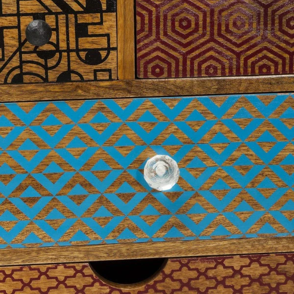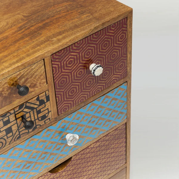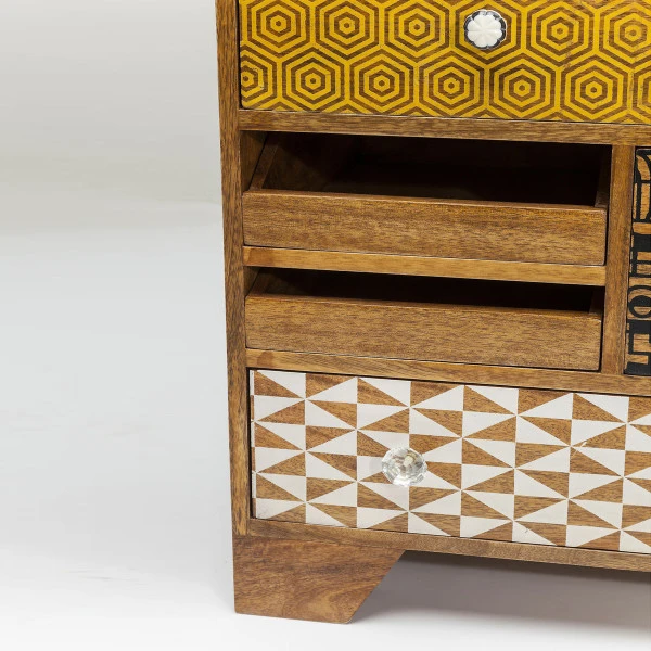 Kenmerkend voor de Kare Design Soleil serie is – zoals de naam al doet vermoeden- de vrolijke, zonnige uitstraling. Kleurrijke patronen geven de meubels in de serie een speelse, retro look. Met een bijpassend tv-meubel in dezelfde ruimte als dit houten design dressoir creëer je een harmonieus geheel.