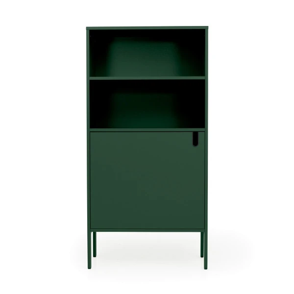 De meubels in de Tenzo Uno serie zijn verkrijgbaar in verschillende varianten. Zo kun je bij deze hoge wandkast kiezen uit gelakt hout in wit, groen, grijs, geel of blauw. Maar de serie omvat ook lage wandkasten en moderne tv-meubels.