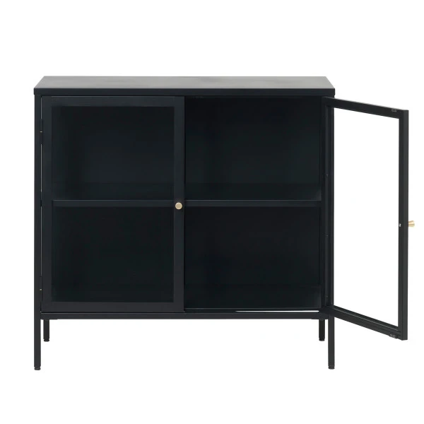 Voor dit metalen kastje heb je altijd wel plek in huis. Met een formaat van 90 bij 85 centimeter is het ideaal voor onder de vensterbank, in het nisje op de hal of juist in de woonkamer met een kunstwerk er bovenop! Achter de 2 glazen deuren van het metalen kastje kun je mooie spulletjes uitstallen: van serviesgoed tot boeken. Ook leuk als schoenenkast in de hal.