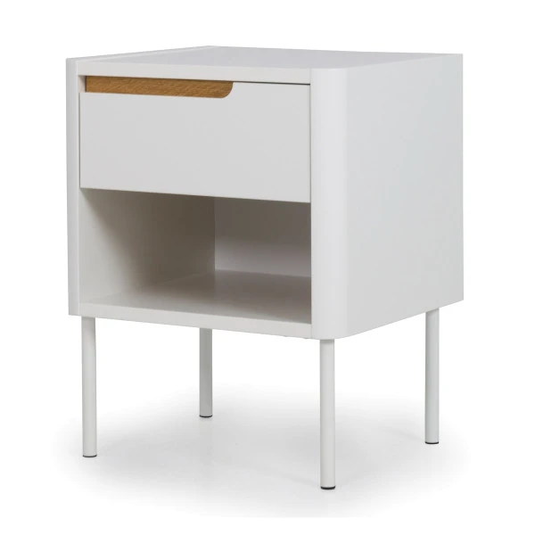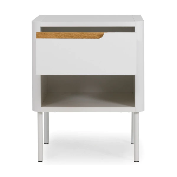 Een Tenzo Switch nachtkastje met een modern, Scandinavisch design. De eiken handgreep vormt een speels en natuurlijk detail in het strakke geheel! Daarbij heb je keuze uit een nachtkastje in wit of antraciet: welke past het beste naast jouw bed? Berg oordopjes, nachtcrèmes en je telefoon netjes weg in de lade; voor tijdschriften en leesboeken is plaats in het grote vak.