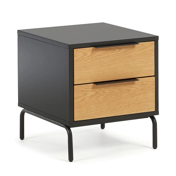 Nachtkastje zwart met eiken