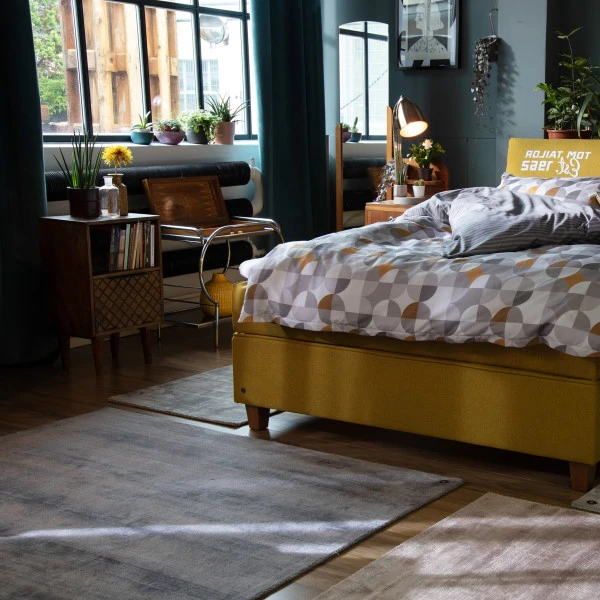 Het nachtkastje is voorzien van een ruim open vak waarin je boeken kunt plaatsen, maar ook nachtcrèmes of je telefoon. Spulletjes die je minder vaak gebruikt of liever uit het zicht bewaart kun je opbergen achter het deurtje van mangohout. Zet er een gezellig geel vaasje op of een oranje nachtlampje voor een heuse retro look!