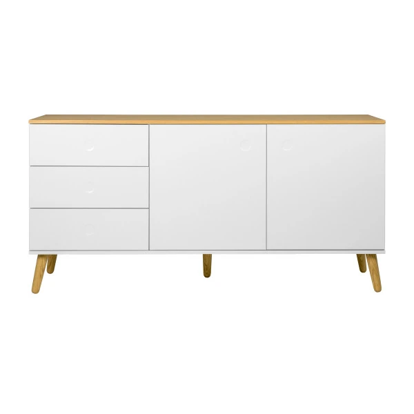 Je herkent de Tenzo Dot serie aan een Scandinavische design look met speelse poten en eikenhouten accenten. Bovendien heb je bij dit dressoir en de andere kasten uit de serie keuze uit verschillende kleuren: grijs, groen of wit. Welke is jouw favoriet?
