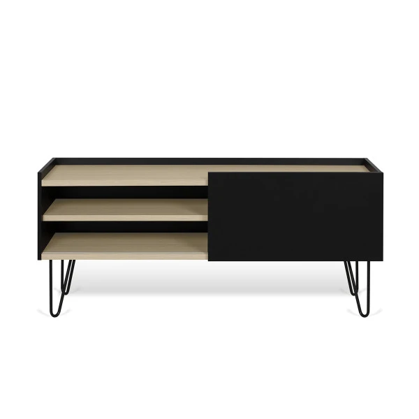 De meubels uit de TemaHome Nina serie gaan uitstekend samen met de Scandinavische design woonstijl. Behalve dit tv-meubel vind je in de serie ook een dressoir in mat zwart of wit, met eiken planken als sfeervol element.
