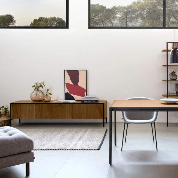 De meubels uit de Kave Home Nadyria serie hebben een stijlvol design dat het midden houdt tussen retro en modern. Combineer het tv-meubel met een bijpassende open kast of een eettafel die je gemakkelijk een maatje groter maakt.
