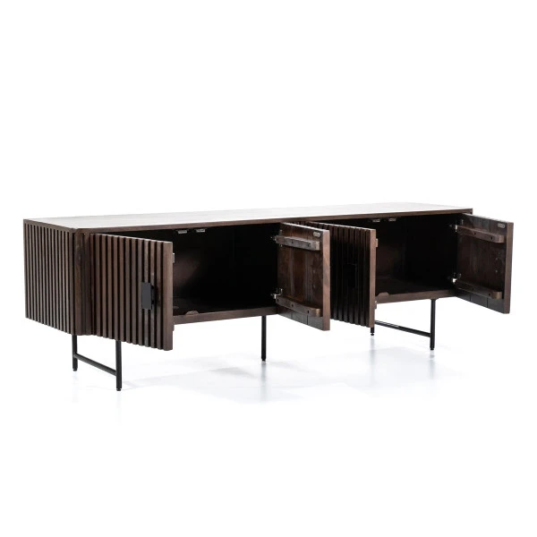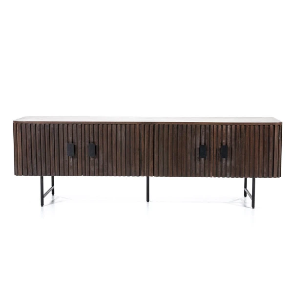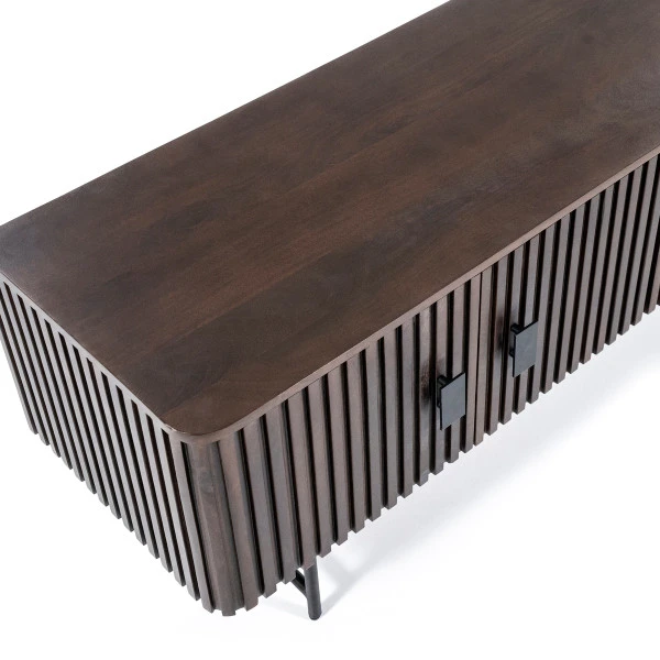 In de Eleonora Remi serie vind je behalve dit tv-meubel ook een dressoir en een wandkast met ronde hoeken. Past donkerbruin niet mooi in jouw interieur? Je kunt ook kiezen voor zwart mangohout! De ronde hoeken en ingefreesde stroken geven de kasten uit de serie een retro karakter.