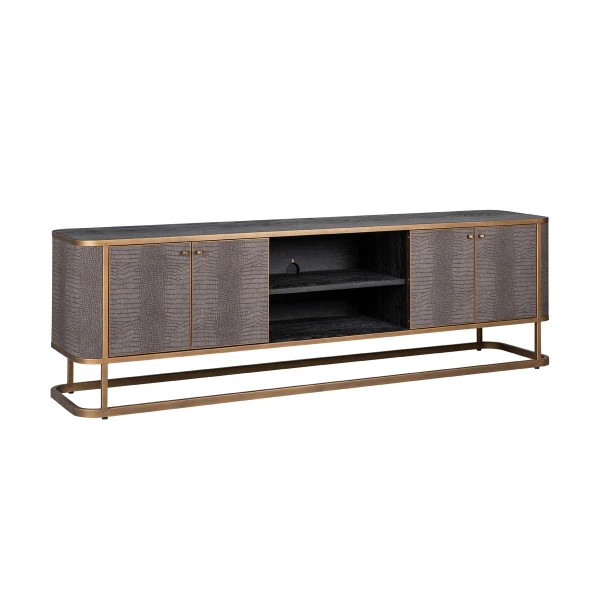 De meubels uit de Richmond Interiors Classio serie zijn gemaakt van hoogwaardig, vegan kunstleer met een voelbare slangenleer structuur. De omlijsting in vintage goud maakt het tv-meubel compleet! Ook voor een luxe salontafel of sidetable kun je terecht in de Classio serie.