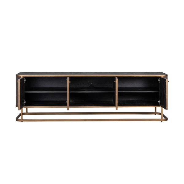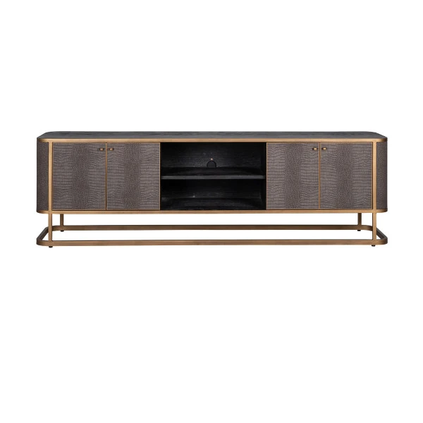 Het Richmond Interiors Classio tv-meubel is zo bijzonder dat je bijna vergeet om naar de film op de tv te kijken. Een elegant design; bekleding met slangenleer; en een omlijsting met goud: dit tv-meubel verdient alle aandacht. In de twee open vakken met kabeldoorgang is ruim plaats voor je apparatuur. Bovendien kun je ook nog heel veel boeken, spelletjes of glazen kwijt achter de deuren van slangenleer!