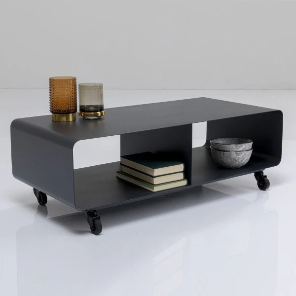 Het Kare Design Mobil tv-meubel is verrijdbaar, zodat je het beeldscherm gemakkelijk kunt draaien naar jouw favoriete zitplaats. Ook rol je het tv-meubel zó even aan de kant wanneer je moet stofzuigen! Het donkergrijs gepoedercoat metaal gaat samen met veel kleuren vloeren en muren. In de twee ruime vakken is plaats voor apparatuur of mooie decoraties!