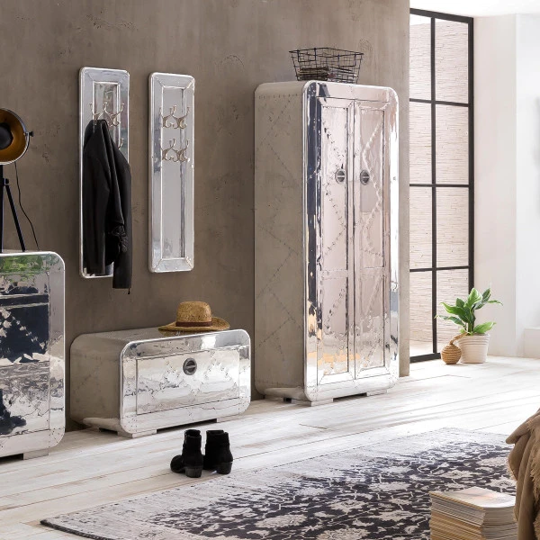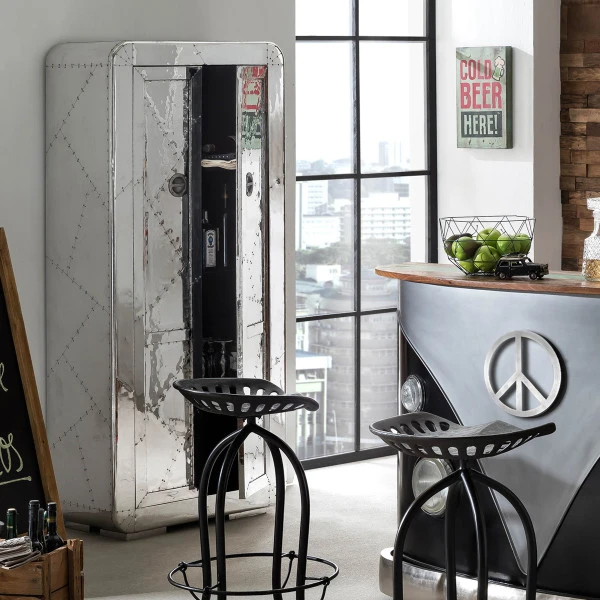 In deze aluminium wandkast met planken kun je heel wat rommeltjes kwijt: de wandkast heeft een formaat van 80 bij 180 centimeter. Voortaan ziet je woonkamer er netjes opgeruimd uit! Of gebruik de kast voor serviesgoed in de eetkamer. De wandkast heeft een retro design met een industrieel tintje; dat komt omdat het aluminium beslagen is.