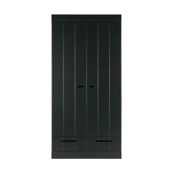 Bijzonder aan deze Woood Connect kledingkast is de mix van landelijk, modern en stoer industrieel. De landelijke look overheerst, maar de 2-deurs kledingkast heeft ook details van een lockerkast! Bovendien heb je keuze uit verschillende interieurs: met een breed hanggedeelte, of juist met extra legplanken. Twee lades maken de zwarte kledingkast compleet.