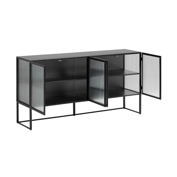 Zwart dressoir met ribbelglas