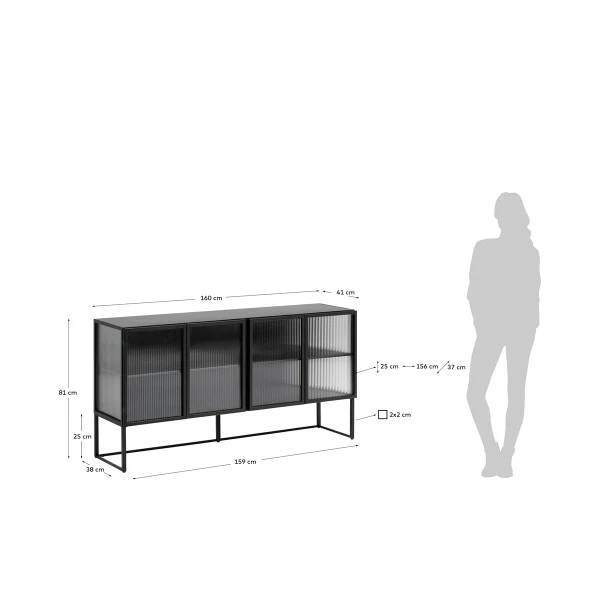 Dit Kave Home Trixie dressoir is ideaal voor het opbergen van serviesgoed. Door het ribbelglas zie je de vormen van je kommen, glazen en borden nog subtiel terug. Daardoor weet je meteen waar je welk servies hebt opgeborgen, en bovendien geeft het een gezellige sfeer in huis! Met een breedte van 160 centimeter kun je in het zwart dressoir heel wat spulletjes kwijt.