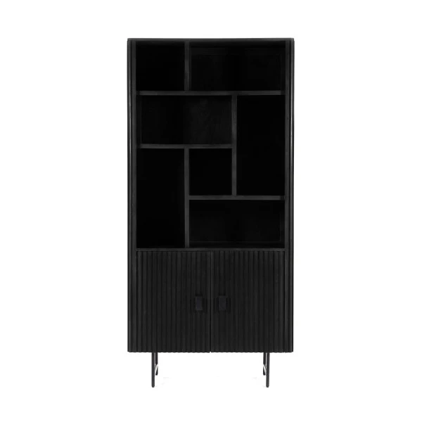 De zwarte Eleonora Remi boekenkast heeft een speelse inrichting met open vakken in verschillende maten. Er is plaats voor grote fotoboeken, kleine pareltjes, all-time favorieten en een paar gezellige decoraties. Onderin de boekenkast kun je administratie verstoppen, achter de twee deuren met ingefreesde latjes. Of gebruik de zwarte kast voor serviesgoed in de eetkamer!